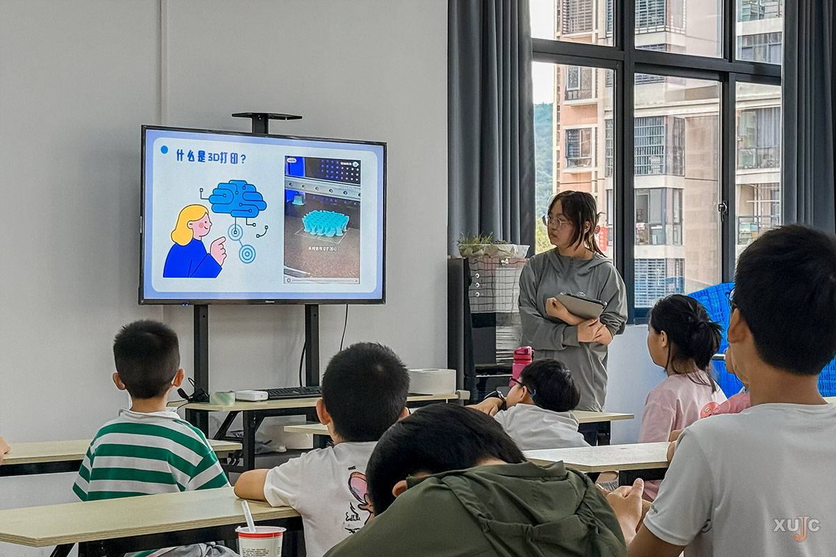 在3D打印科普環(huán)節(jié),實(shí)踐隊隊員以“制造與智造的區(qū)別”為切入點(diǎn),引導(dǎo)孩子們認(rèn)識該技術(shù)。隊員通過播放視頻,直觀展示了3D打印機(jī)一層一層“畫”出立體模型的工作方式,并介紹了其發(fā)展歷程、應(yīng)用領(lǐng)域及未來前景。