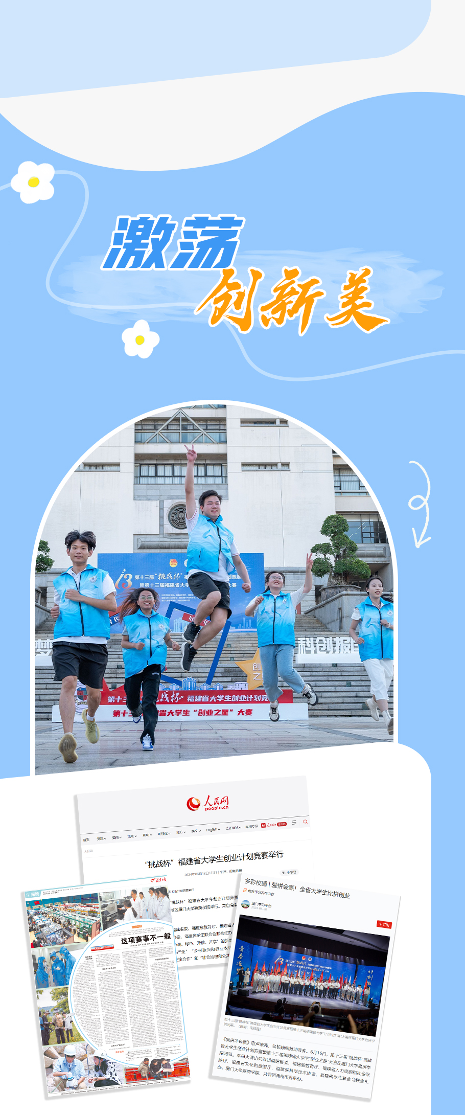 2024年6月,第十三屆“挑戰(zhàn)杯”福建省大學(xué)生創(chuàng)業(yè)計(jì)劃競(jìng)賽暨第十三屆福建省大學(xué)生“創(chuàng)業(yè)之星”大賽在廈門(mén)大學(xué)嘉庚學(xué)院舉辦。學(xué)習(xí)強(qiáng)國(guó)、福建廣電、漳州電視臺(tái)等媒體(平臺(tái))既積極跟進(jìn)、報(bào)道賽事賽況,也關(guān)注我校何以三度承辦該賽事——“該校高度重視學(xué)生創(chuàng)新創(chuàng)業(yè)教育,建校20年間,嘉庚學(xué)子在國(guó)際性賽事獲獎(jiǎng)184項(xiàng),全國(guó)性賽事獲獎(jiǎng)1530項(xiàng)。”