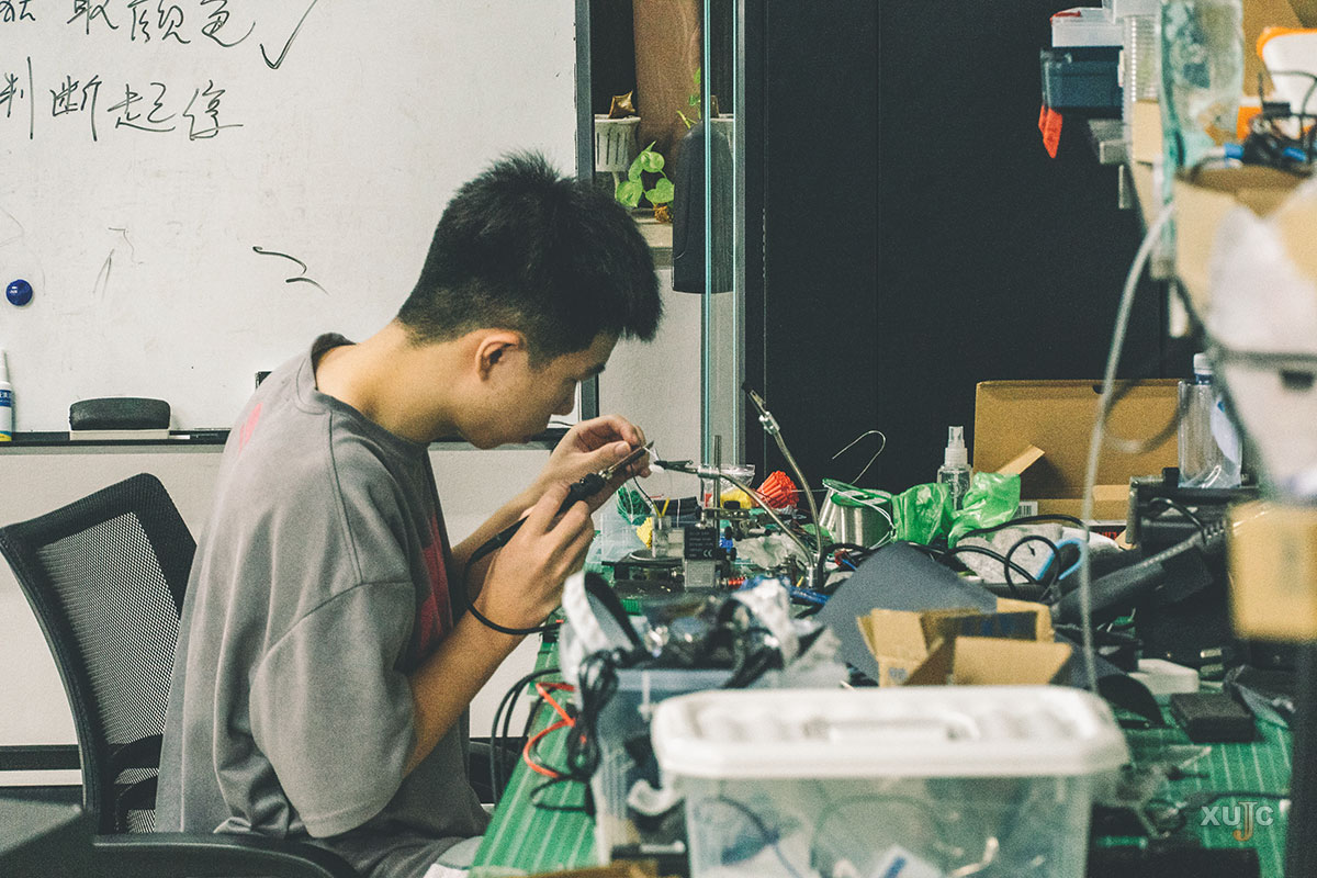 夜晚的理工大樓實(shí)驗(yàn)室,燈火通明。一群為了理想而努力的“嘉”人們還堅(jiān)守在這里。他們有的在電腦前敲打著代碼,有的在繁復(fù)的電路圖中尋找突破,有的試圖通過討論攻克難題。他們堅(jiān)信:只要心中有夢、腳下有路,便無懼風(fēng)雨。