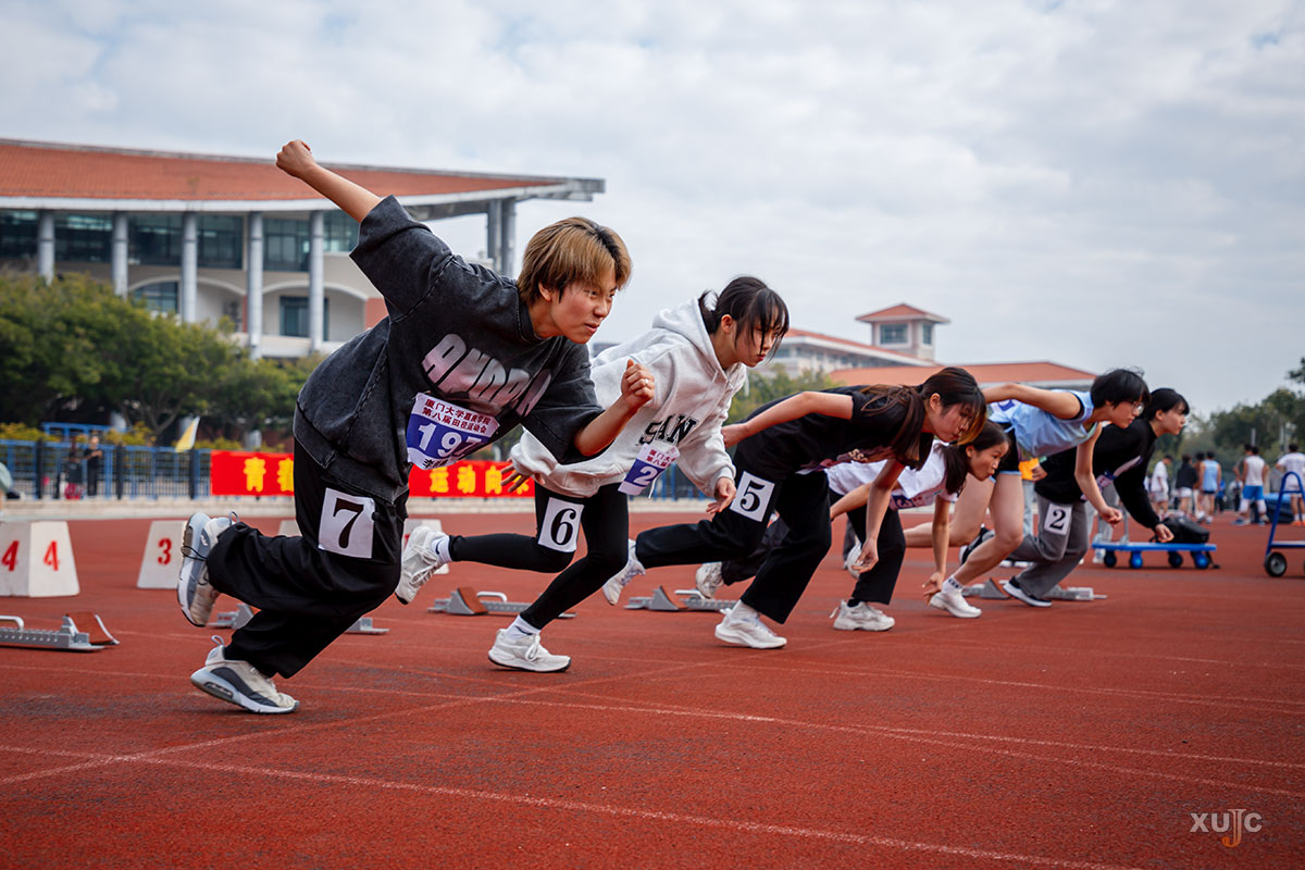 發(fā)令槍響,運(yùn)動(dòng)員們俯身、起步、奔跑,他們用腳步踏出運(yùn)動(dòng)的節(jié)拍,奏響青春的樂章。