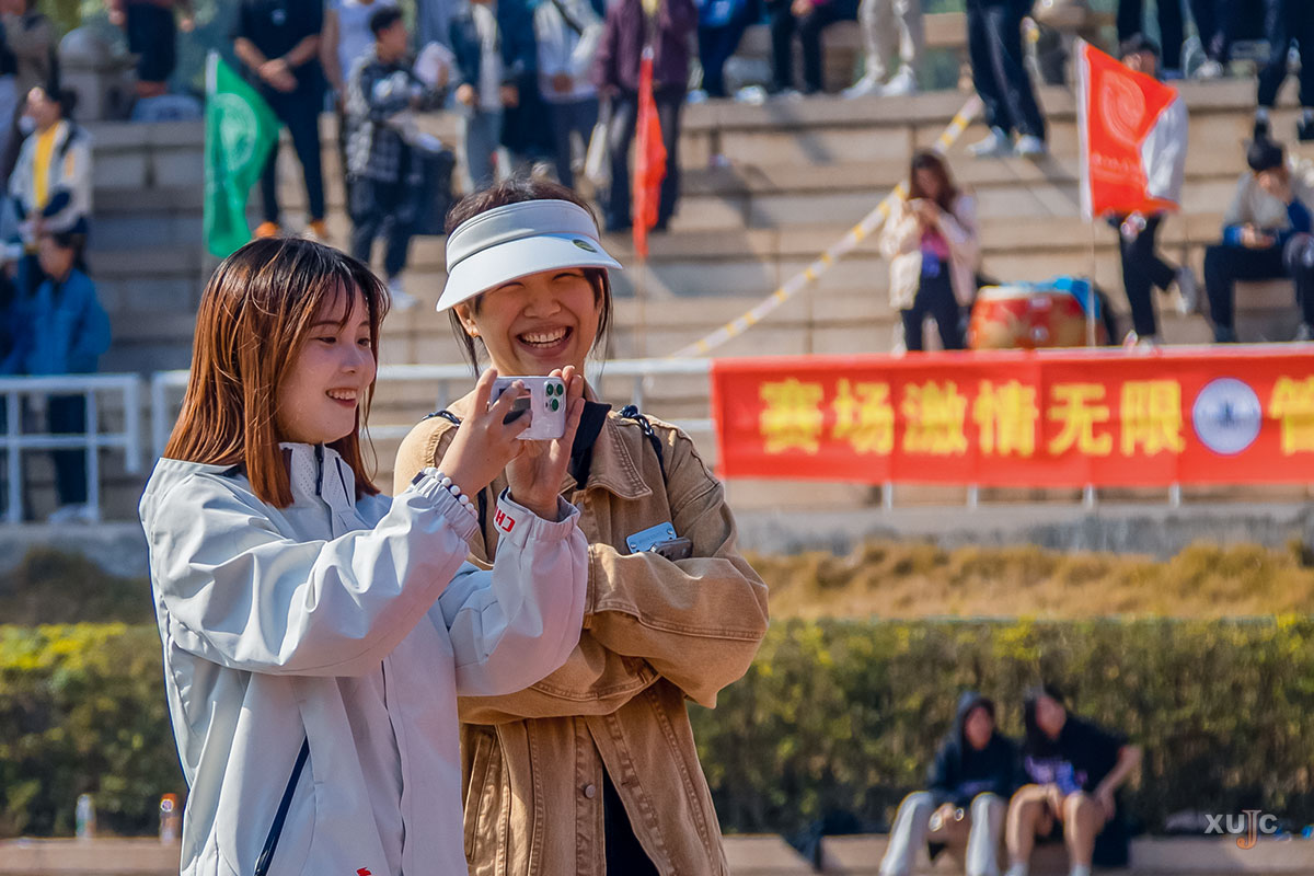 在秋冬陽光的照射下,不斷被敲擊的紅鼓、震耳欲聾的歡呼吶喊聲以及在風(fēng)中搖曳的各色旗幟,讓整個(gè)田徑場更顯繽紛。
