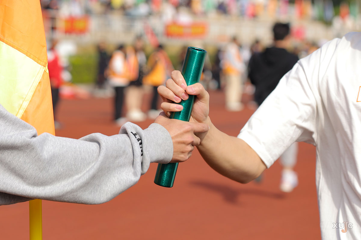對(duì)視、交接,接力棒手手相傳,傳遞團(tuán)結(jié)與希望。