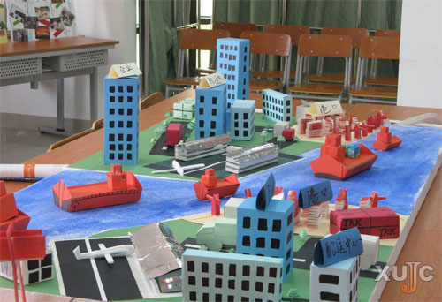 在409教室,物流管理系為了讓來賓更清楚了解物流概念,特意在展廳內(nèi)布置了一個企業(yè)生產(chǎn)模型。該系的方超同學(xué)借助電腦制作的PPT向來賓講解從原材料到顧客的整個供應(yīng)鏈過程。
