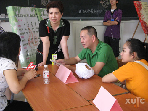 借此次校園開放日,財(cái)政金融系還舉辦了首屆系友會成立大會。出席此次系友會成立大會的有03、04屆、05屆畢業(yè)生及專業(yè)老師。財(cái)政金融系康國彬主任希望大家能夠通過這個交流平臺互相照顧。財(cái)政金融系第二屆學(xué)生會主席、系友會會長譚瀜汀說:“我們系友會希望以廈門為中心,將全國各地的嘉庚財(cái)金人凝聚在一起,加強(qiáng)聯(lián)系。”她還介紹了財(cái)政金融系的就業(yè)渠道:“學(xué)習(xí)這個專業(yè)的就業(yè)前景十分廣闊,各大銀行都有我們的同學(xué),我從事的是企業(yè)策劃方面的工作。”