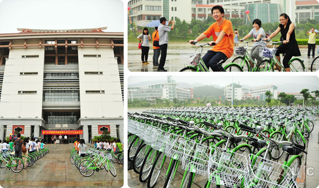 據(jù)了解,2010年在廈門大學朱崇實校長的倡議下,我院出資將一批無人認領(lǐng)的自行車及廣大畢業(yè)生們捐贈的自行車“變廢為寶”,改裝成校園公共自行車。目前,漳州校區(qū)一共有2000余輛小綠。