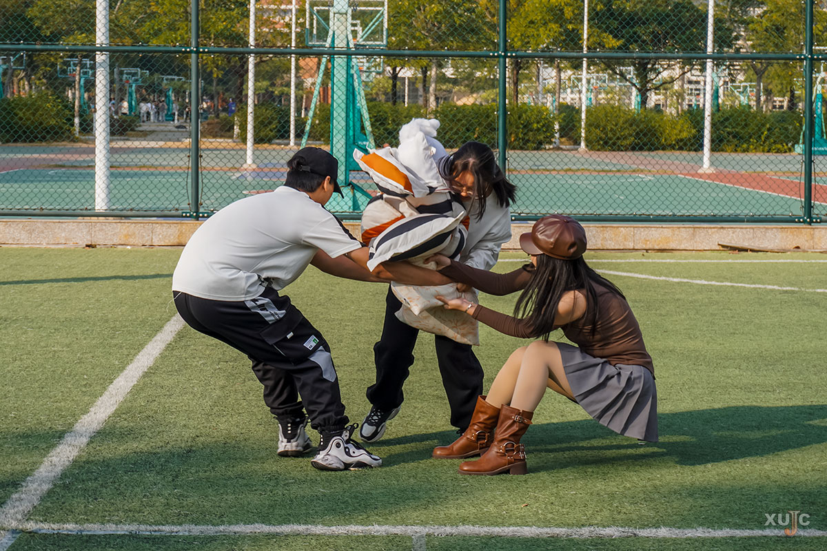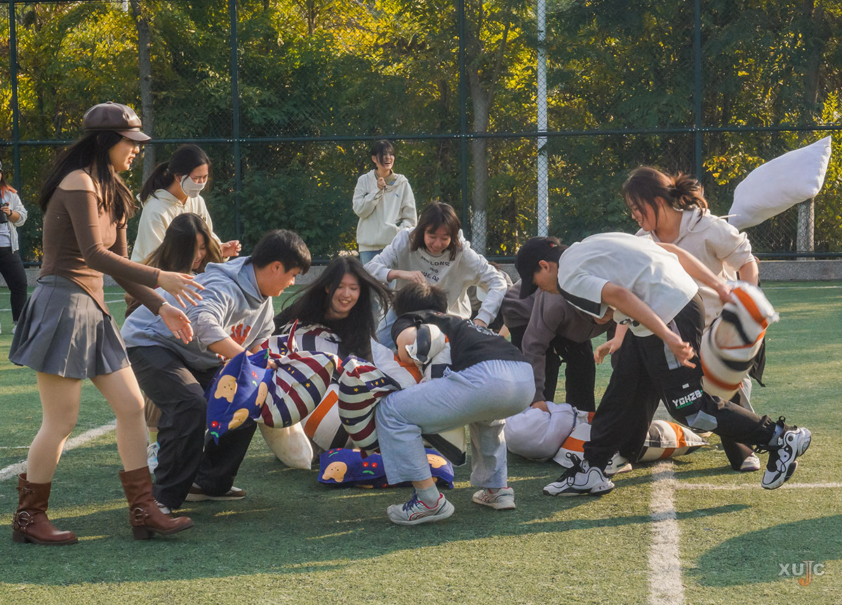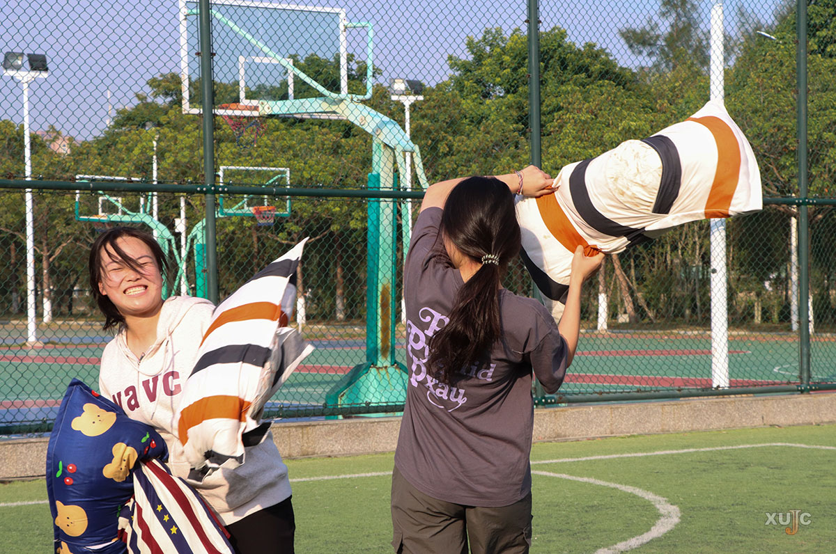 在第二輪活動(dòng)中,所有學(xué)生分為兩個(gè)陣營,守護(hù)自家的枕頭,并去爭搶對方陣營或場地中央的枕頭。占有枕頭更多的隊(duì)伍獲勝。同學(xué)們之間充滿著對抗的熱情。