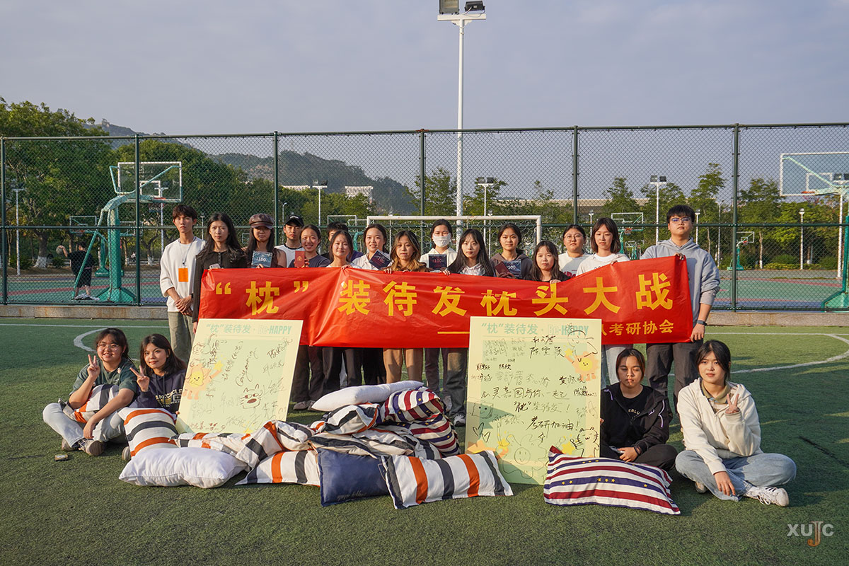2024年全國碩士研究生招生考試(初試)將于2023年12月23日至25日舉行。為了幫助考生緩解考研壓力,用更好的心態(tài)面對考試,近日,在五人制足球場,心靈“嘉園”與晨讀隊(duì)聯(lián)合舉辦“枕”裝待發(fā)枕頭大戰(zhàn)考研專場活動(dòng)。