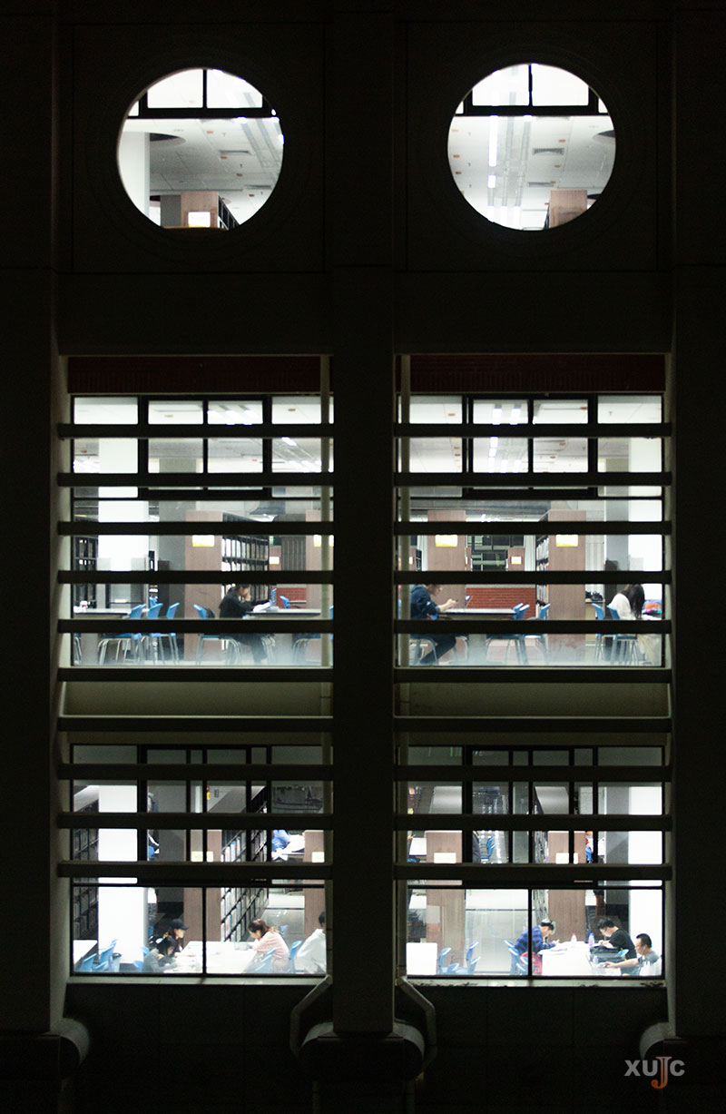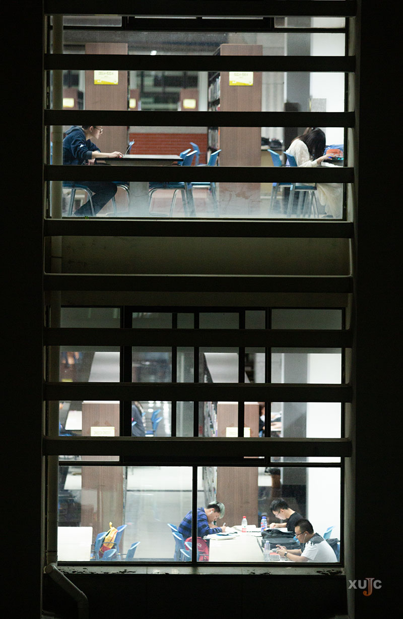 夜晚的鐘聲回響,暈開一地月光。校園又恢復了寧靜。圖書館里的學子依舊堅持著,他們在知識的海洋中疾行,那亮著的每一盞燈,都如同指引航行者的燈塔。