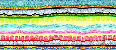 《卡勒夫》是我最為滿意和欣喜的作品,以條紋的形式出現(xiàn),制造出紋理壘積層層疊加的效果,碧波蕩漾泛起漣漪的感覺(jué),有沒(méi)有一種好似情竇初開的幸福感。以彩虹的顏色作為參考,赤橙黃綠青藍(lán)紫的漸變衍生。