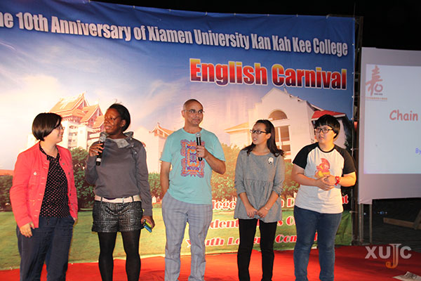 10月18日,為慶祝學(xué)院十周年華誕,由大學(xué)英語(yǔ)教學(xué)部主辦,學(xué)工部、團(tuán)委協(xié)辦的“英語(yǔ)嘉年華 師生同樂(lè)會(huì)”英語(yǔ)文藝晚會(huì)在北區(qū)步行廣場(chǎng)拉開(kāi)帷幕。