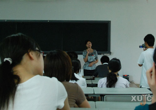 為了讓準新生們對大學生活有更加清晰的認識,陳老師先讓一位大一學生談了談自己大學一年來的感受。這個同學說自己在入學前就已經抱定了做媒體人的志向,在課堂外他通過參加學生活動,在實踐中磨礪自己的媒體知識,感覺受益匪淺。