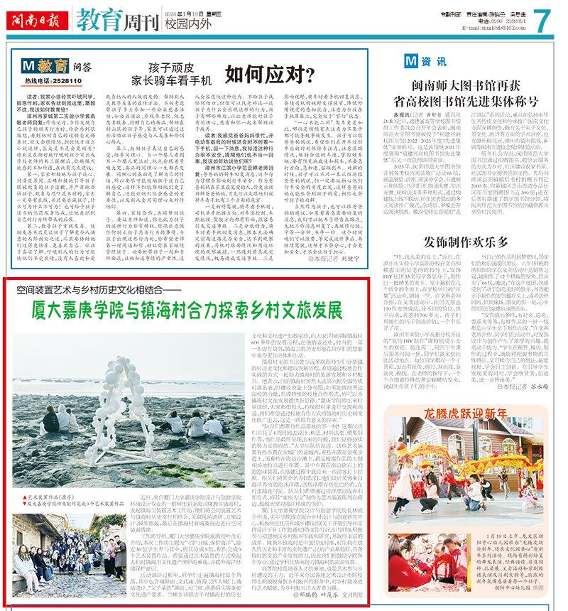 鎮(zhèn)海村支部書記黃少遠(yuǎn)多次跟師生們分享鎮(zhèn)海村歷史文化和建設(shè)發(fā)展歷程,希望通過校地合作實(shí)踐的方式一起助力鎮(zhèn)海村的旅游發(fā)展和鄉(xiāng)村振興。他表示,目前鎮(zhèn)海村雖然入選第六批全國(guó)傳統(tǒng)村落名錄,但建設(shè)資金十分有限,如果能借助周邊高校的力量,形成持續(xù)的校地合作形式,將可以為鎮(zhèn)海村文旅發(fā)展提供新思路。“嘉庚學(xué)院師生來(lái)村里調(diào)研,大家都很投入,持續(xù)跟村里進(jìn)行交流和溝通,我們希望通過校地合作方式將鎮(zhèn)海村歷史和文化推廣出去,這是一次很有意義的探索。”