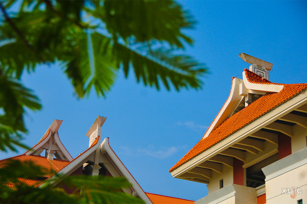 檐頂?shù)?ldquo;嘉庚”橙遇上天邊的孔雀藍(lán)