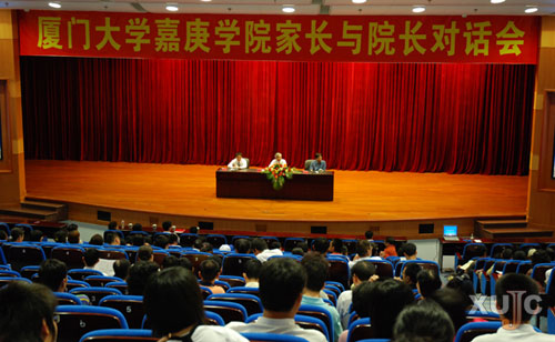 此次講座請(qǐng)來了嘉庚學(xué)院學(xué)生會(huì)主席周廈和天行健社團(tuán)創(chuàng)始人鄭鐸。周廈根據(jù)自己大學(xué)三年積累的經(jīng)驗(yàn),提出“大學(xué)不再是保險(xiǎn)箱,而是競(jìng)爭(zhēng)樂土”的理念,這個(gè)理念得到了現(xiàn)場(chǎng)許多家長(zhǎng)的贊同。鄭鐸則說“壓力都是自己給的”,只有在大學(xué)期間不斷給自己施加壓力,才能不斷進(jìn)步,取得更大成就。