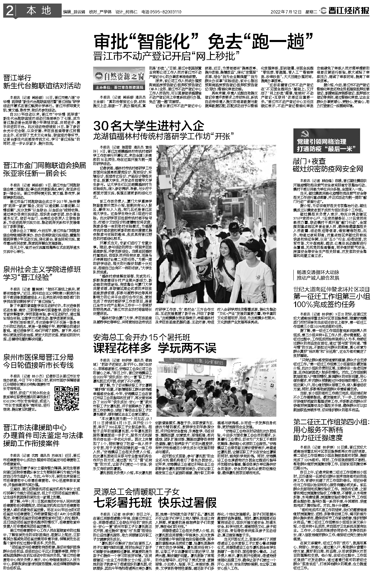 本報(bào)訊(記者 施蓉蓉 通訊員 黃佳玲)9日,晉江龍湖鎮(zhèn)福林村傳統(tǒng)村落研學(xué)工作坊舉行開幕儀式,來自全國(guó)5所高校的30名師生,將在這里開展為期一周的研學(xué)活動(dòng)。