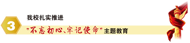 自2019年9月以來,我校扎實推進“不忘初心、牢記使命”主題教育,緊緊圍繞學習貫徹習近平新時代中國特色社會主義思想這一條主線,堅持以政治建設為統(tǒng)領,全面把握“守初心、擔使命、找差距、抓落實”的總要求,以“理論學習有收獲、思想政治受洗禮、干事創(chuàng)業(yè)敢擔當、為民服務解難題、清正廉潔作表率”為目標,嚴格將“學習教育、調查研究、檢視問題、整改落實”貫穿始終。我校不僅精心策劃了6場內容豐富的主題教育示范黨日活動,還開展了16場調研座談會(參與師生達256人/次,網(wǎng)上參與人數(shù)達3000多人/次),收集意見建議310多條,形成了6份調研報告,立知立改,有效解決了師生關注的突出問題,讓師生切實感受到主題教育帶來的新變化新成效。