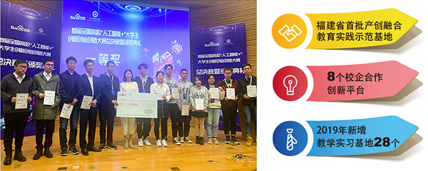 2019年,我校積極探索校企合作模式,在校企合作創(chuàng)新、產(chǎn)學研創(chuàng)深度融合上取得了長足的進展。值得一提的是,2019年12月,我校產(chǎn)創(chuàng)融合創(chuàng)新創(chuàng)業(yè)創(chuàng)造基地獲評福建省首批產(chǎn)創(chuàng)融合教育實踐示范基地。
