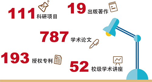 2019年,我校加大力度,循序漸進,穩(wěn)步推進科研工作,科研實力持續(xù)提升。教師獲得科研項目111個(縱向項目立項67項、橫向項目立項44項),發(fā)表學術論文787篇(其中核心論文140篇),出版著作19部,獲得授權專利193項。