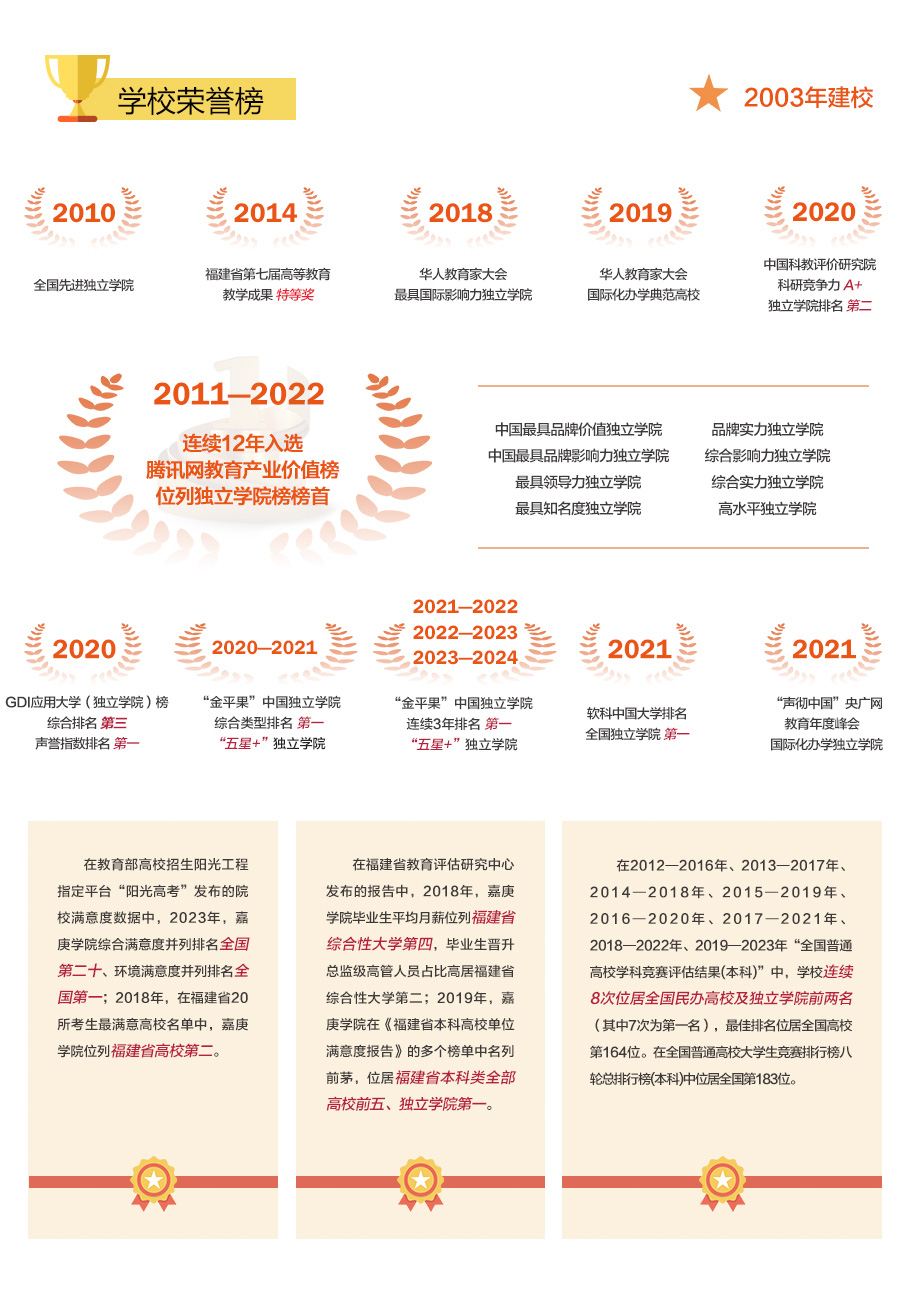 2014年開始,嘉庚學(xué)院邁入新一輪跨越發(fā)展,提出“教學(xué)與科研并舉,以有效教學(xué)見長”的發(fā)展思路,以制度建設(shè)與隊伍建設(shè)為立足點,以實踐教學(xué)、開放辦學(xué)、學(xué)科建設(shè)、科研工作、研究生教育為生長點,打造特色,樹立品牌,努力實現(xiàn)成為國內(nèi)同類高校一流、獲得國際廣泛認(rèn)可、以有效教學(xué)見長的新型優(yōu)質(zhì)高等學(xué)校的高遠(yuǎn)愿景。(相關(guān)數(shù)據(jù)統(tǒng)計截至2025年6月12日)
