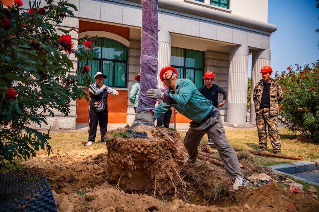 本次種植工作歷時6天,動用吊車、挖掘機及土方車等重型器械10余部,一線施工人員達45人。本次種植進一步增強了校園道路的遮陰效果和校園景觀品質(zhì)。可以預見的未來是,校園里玉蘭廣場的綠化覆蓋率得到加強;“百年樹人”的黃花風鈴木花海效果更加飽滿;理工大樓內(nèi)花壇景觀將顯著提升;棲霞凌波湖則會在垂枝紅千層的映襯下形成一道亮麗的駁岸風景線。
