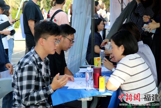 今年校園秋季招聘會在規(guī)模上再創(chuàng)新高,“擺擂”的招聘單位除了有常見的“單打”(單家企業(yè)獨立招聘)外,還出現(xiàn)了“團戰(zhàn)”——由政府部門組團前來,譬如海滄區(qū)人社局和晉江人社局分別組織了32家和8家單位進校招聘。