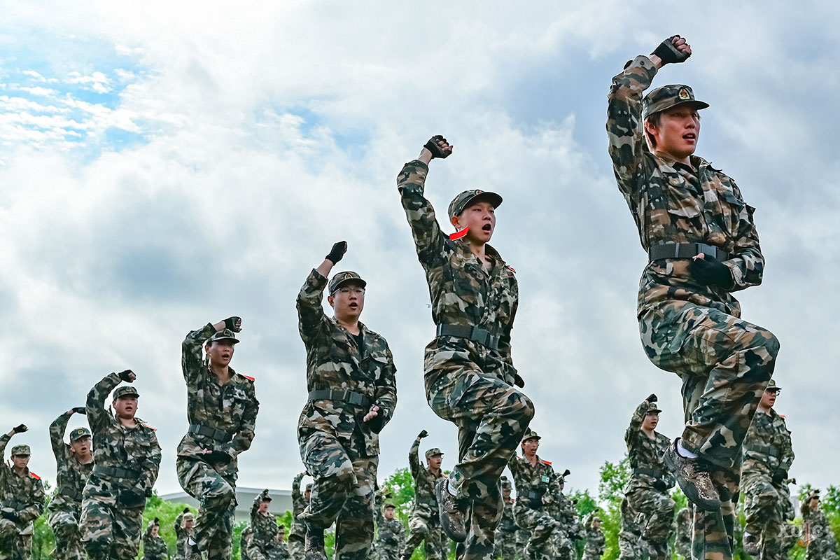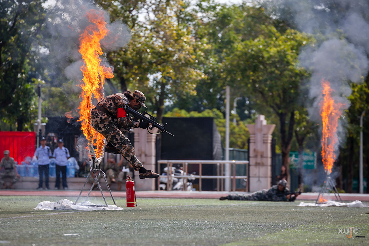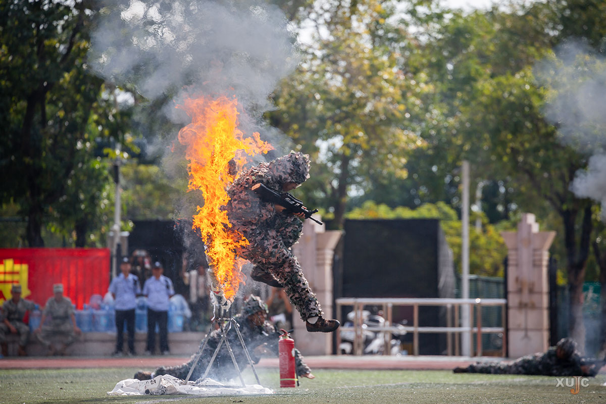 無人機偵察敵情;戰(zhàn)士們鉆火圈、匍匐前進、遠(yuǎn)攻近搏;登陸集結(jié)、隱蔽突進、要點奪控……戰(zhàn)術(shù)對抗演練再現(xiàn)了戰(zhàn)場的緊張氛圍。演練采取“紅藍(lán)對抗”的方式組織,融入了軍訓(xùn)單兵戰(zhàn)術(shù)、班排進攻、戰(zhàn)場防護等基礎(chǔ)課目,全要素、超逼真的演練令人震撼。炮火轟鳴,槍聲四起,硝煙彌漫,緊張激烈的對抗氛圍讓人熱血沸騰,也讓人深刻體會到和平的珍貴與不易。