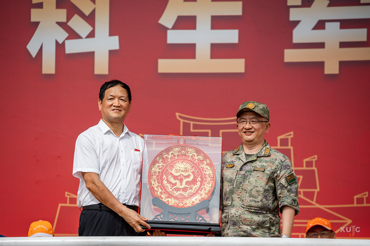 副院長洪永強代表學(xué)校向承訓(xùn)部隊贈送紀(jì)念品——閩南地區(qū)工藝品漆線雕九龍盤,祝愿承訓(xùn)部隊在國防和軍隊現(xiàn)代化建設(shè)的新征程上奔騰向前,開創(chuàng)新篇。