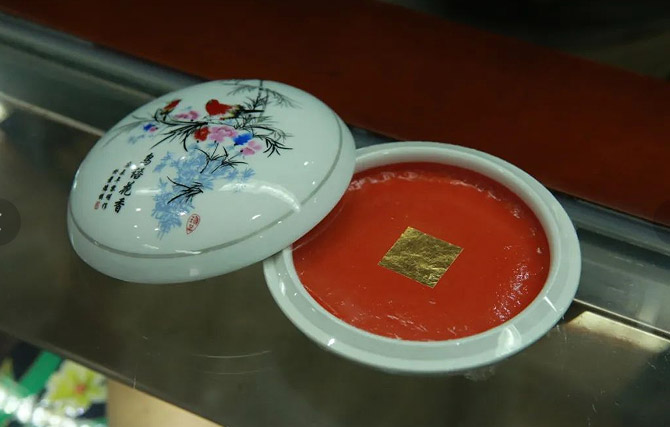 據(jù)悉,漳州八寶印泥起源于清康熙十二年(1673年),于2008年被列入第二批國家級非物質文化遺產名錄。這項獨特的工藝以艾絨、金箔、蓖麻油等八種珍貴原料,經過選料、研磨、調配、攪拌等三十余道復雜工序精制而成。其成品不僅具有色澤朱紅、氣味芬芳的特點,更以“浸水不化、火燒留痕、色澤長新”的獨特品質聞名于世,歷史上曾作為貢品進獻朝廷,至今仍在海內外書畫界享有盛譽。