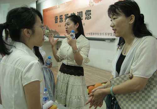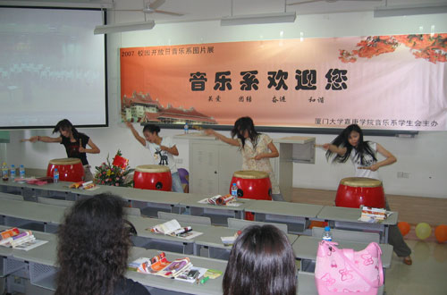 上午9點(diǎn),在主樓群1號(hào)樓501教室,2007年校園開(kāi)放日“嘉庚新樂(lè)章”文藝演出準(zhǔn)時(shí)開(kāi)場(chǎng)。該演出由我院音樂(lè)系學(xué)生為使前來(lái)的學(xué)生家長(zhǎng)及考生家長(zhǎng)更直觀地了解音樂(lè)系的教學(xué)成果,而特意專門準(zhǔn)備的一場(chǎng)演出。