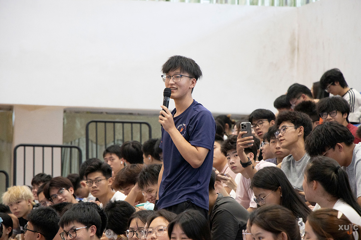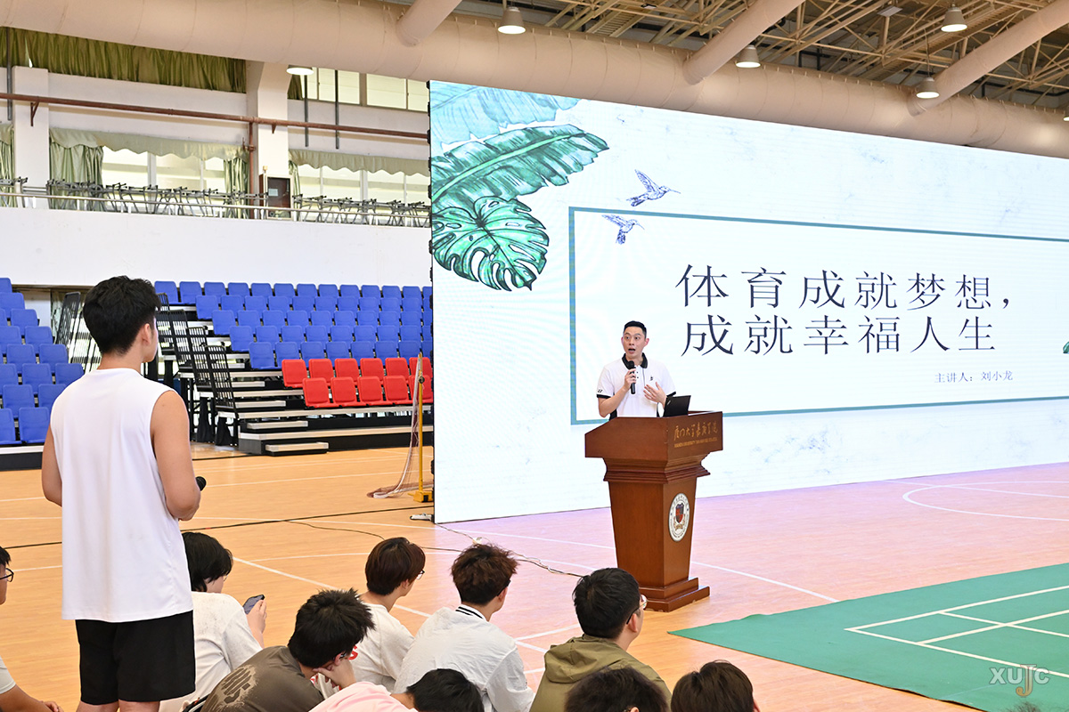 在互動(dòng)問(wèn)答環(huán)節(jié),劉小龍聚焦新生關(guān)切,耐心細(xì)致地逐一解惑。當(dāng)被問(wèn)及“如何培養(yǎng)體育愛(ài)好”時(shí),他著重強(qiáng)調(diào)“身體是革命的本錢(qián)”,指出大學(xué)階段培養(yǎng)體育技能,不僅能強(qiáng)健體魄,更能在日復(fù)一日的鍛煉中傳遞“堅(jiān)持”的信念。談及業(yè)余羽毛球愛(ài)好者如何提升技術(shù),他給出“多練方能熟能生巧”的實(shí)用建議,同時(shí)鼓勵(lì)新生主動(dòng)向現(xiàn)場(chǎng)的專業(yè)老師請(qǐng)教,借助專業(yè)指導(dǎo)更快進(jìn)步。