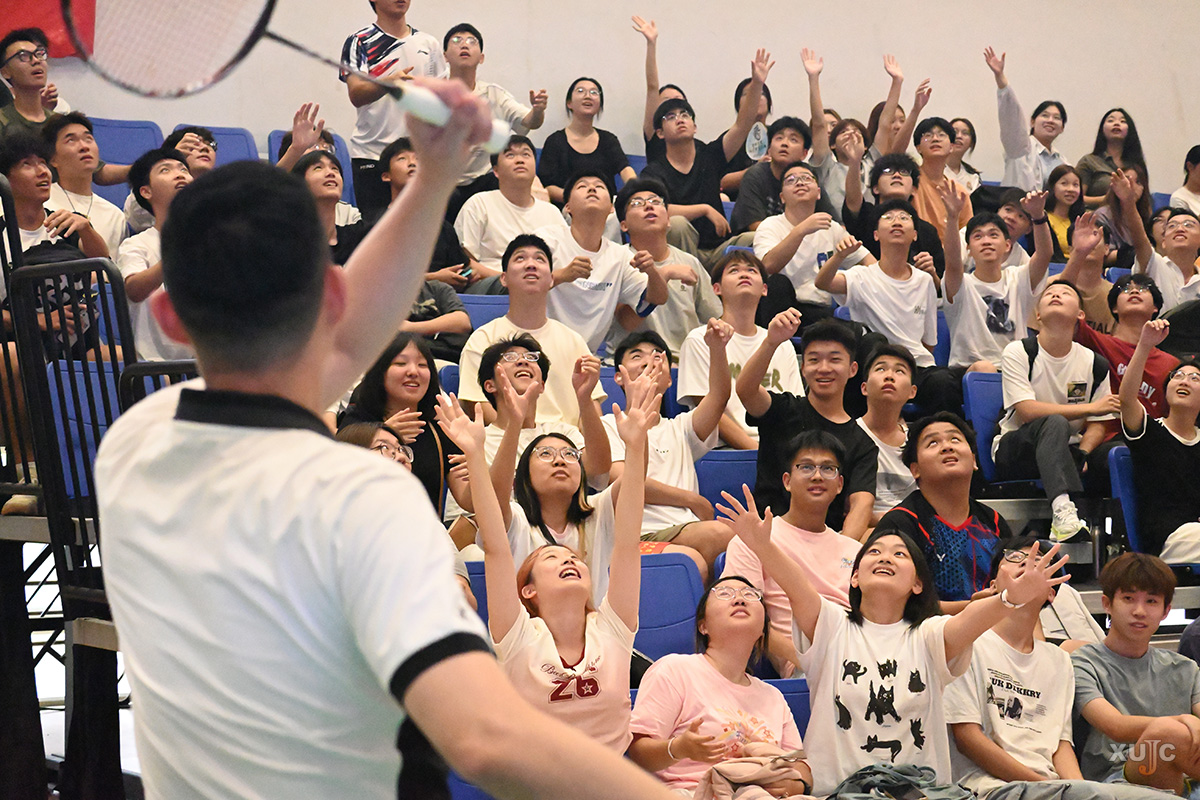 “現(xiàn)場(chǎng)氛圍很好!大家都積極提問(wèn)和聽(tīng)劉老師的講解,在打表演賽時(shí)也會(huì)發(fā)自內(nèi)心地鼓掌。”設(shè)計(jì)與創(chuàng)意學(xué)院2022級(jí)的馬澤感嘆道。作為羽毛球愛(ài)好者,能見(jiàn)到劉小龍,他十分激動(dòng)。值得一提的是,在教學(xué)互動(dòng)環(huán)節(jié),馬澤還作為學(xué)員參與練習(xí),令他印象最深的是劉小龍訓(xùn)練時(shí)被熱水燙傷的經(jīng)歷。他說(shuō):“我自身也有過(guò)類似經(jīng)歷,所以對(duì)這件事印象深刻。劉小龍老師在經(jīng)歷此事之后,沒(méi)有一蹶不振,而是更加發(fā)奮圖強(qiáng),認(rèn)真強(qiáng)化自我,最終走向冠軍的行列。感謝劉老師分享自身經(jīng)歷,讓我收獲滿滿的前行動(dòng)力!”