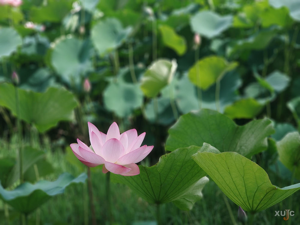 棲霞的湖水將荷花綰入你的青絲裝點(diǎn)容發(fā)