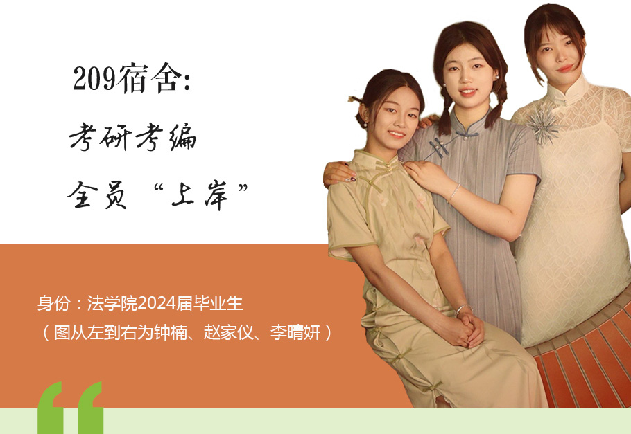 一人考入某地市場(chǎng)監(jiān)督管理局、兩人被心儀院校錄取為研究生!凌云園區(qū)2號(hào)樓209宿舍全員“上岸”。住在這間宿舍的3位“嘉”人都來自法學(xué)院。她們是法學(xué)專業(yè)的李晴妍,行政管理專業(yè)的鐘楠和趙家儀。她們是舍友,更是家人。四年的大學(xué)時(shí)光,她們堅(jiān)定地朝著心中的目標(biāo)前進(jìn),每一步都充滿了力量。