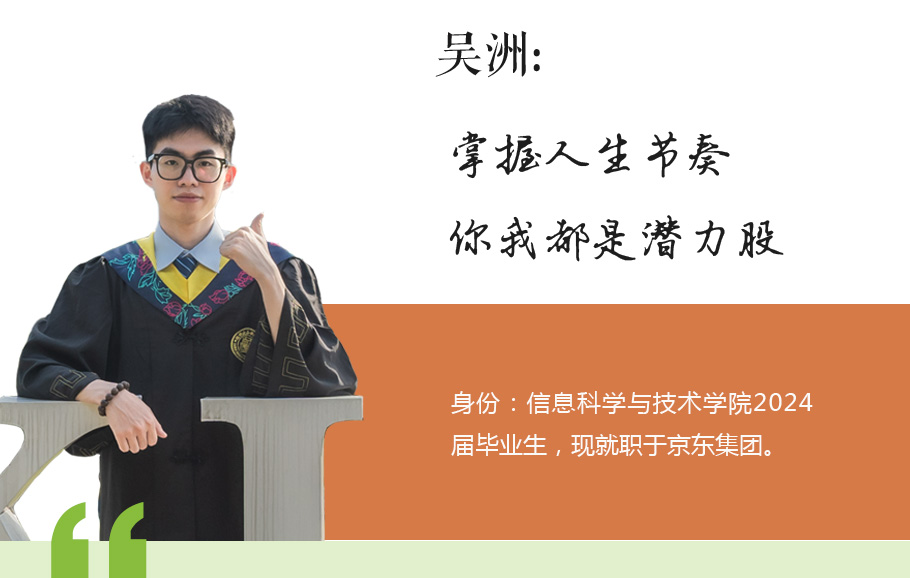 “欲速則不達(dá),慢也是一種快。人生就是馬拉松,掌握好自己人生的節(jié)奏,注重過程和積累,只有腳踏實(shí)地做好每一件事情才能取得長(zhǎng)遠(yuǎn)的成功。每個(gè)人都是潛力股。”這是吳洲一路走來,不停地對(duì)自己說的話。