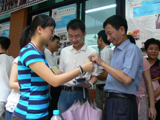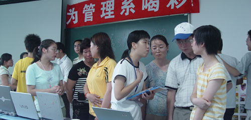 在采訪過程中,小記者發(fā)現(xiàn),家長們十分關(guān)注學(xué)校的師資力量,專業(yè)限制,往屆學(xué)生就業(yè)情況,英語的四、六級考試,考研,出國等等情況。管理系的展廳布置十分的人性化,一進入展區(qū)便可看到走廊地板上的紅色箭頭路標,上面寫著:走向成功。負責的同學(xué)介紹說,他們設(shè)計的理念,是讓同學(xué)們一步一個腳印地走向求學(xué)之途,成功之路!管理掌握未來,誰是我們成功的榜樣?展廳的走廊墻壁上掛滿了全球著名管理大師的照片及其言論,振奮人心!展區(qū)各處貼滿了學(xué)生參加各項活動的圖片和文字記錄,形象地向考生和家長展示了豐富多彩的大學(xué)生活。課桌上放著管理系的專業(yè)書和學(xué)生擁有的參考書讓參觀者更深入地了解了管理系。為了方便家長記錄所需信息,工作人員還不斷地遞上筆和筆記本。最為動人的是管理系別出心裁的父親節(jié)禮物派送,他們以抽簽的方式送出了筆記本、杯子、卡片等紀念品。墻上貼著學(xué)生對父親的寄語:“爸爸,我一直為你驕傲;爸爸,你是天底下最好的父親,我愛你!”、“也許我不夠聽話,也許有些話傷了你,但是我還是堅信我愛你!”……有的同學(xué)調(diào)皮的說:“爸爸,少喝醉,孩兒祝您身體安康!”……愛意蔓延,開放日是忙碌的,但卻不乏溫情,這就是管理系,這就是我們的嘉庚學(xué)院!