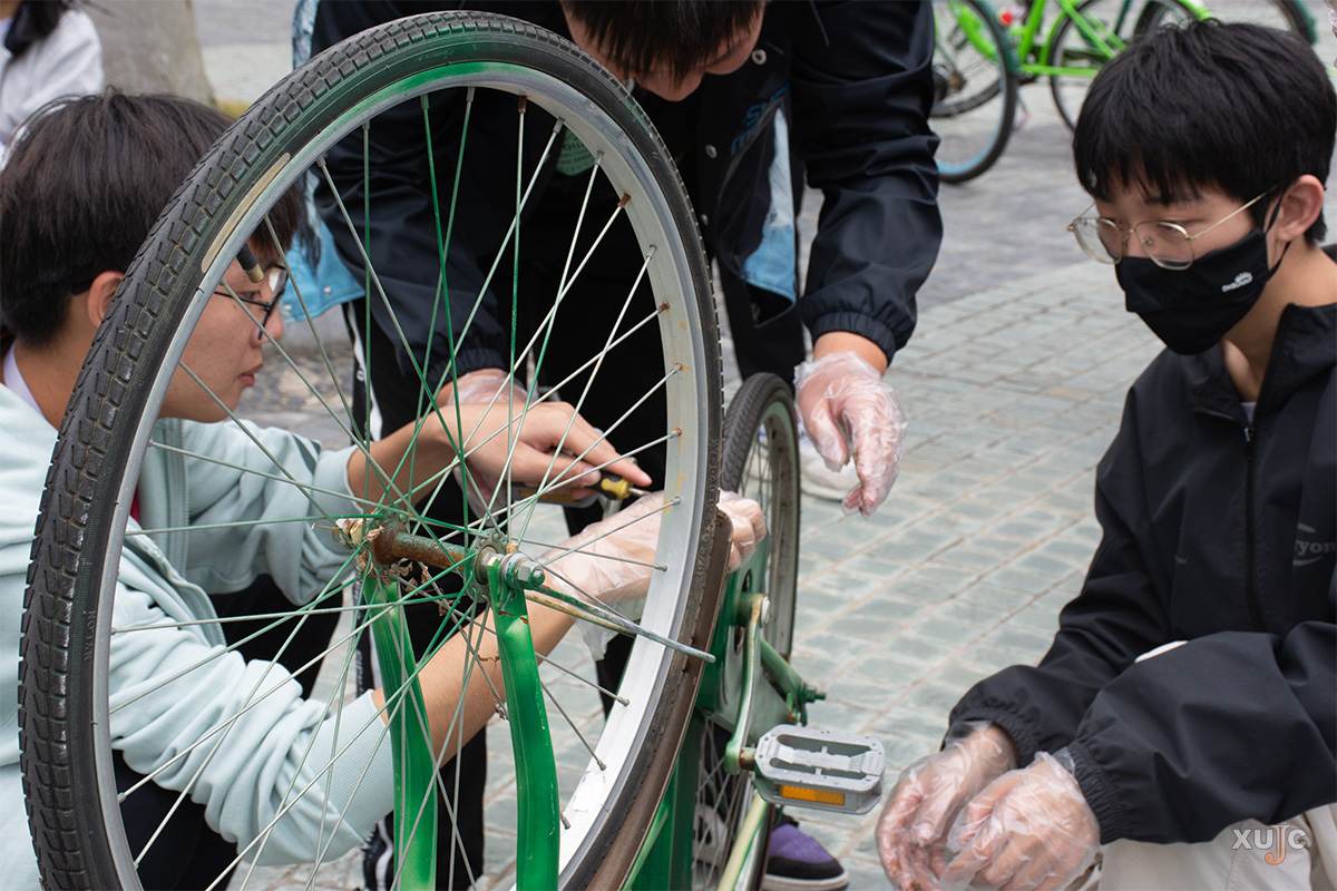 “小綠”是我校的共享公共自行車,主要源于廢舊自行車的改造、校友捐贈以及學校采購。今年年初,我校專門召開勞動教育“小綠”專場交流研討會,明確將“小綠”打造成我校勞動教育示范課程的思路。3月份,在學工部、團委與機電工程學院黨總支牽頭下,“小綠”維修管理團隊正式組建,主要負責“小綠”的日常維修和管理工作。此外,志愿者們還開展了“小綠”督導活動。同學們在動手實踐中不僅增強了勞動積極性、主動性、責任感、自豪感,而且感受到“可持續(xù)發(fā)展”的“小綠”文化,深化建設和諧美麗“嘉園”的理念。