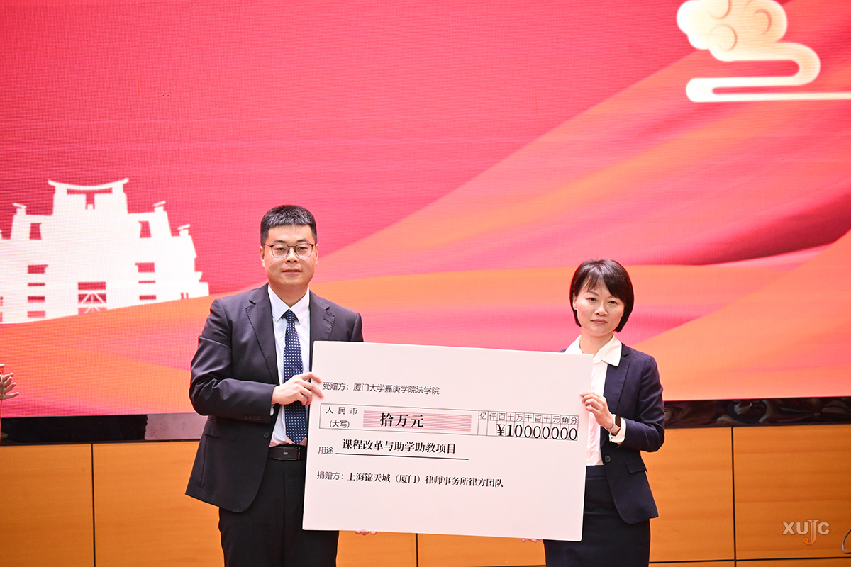 慶典上,法學(xué)院感謝社會(huì)各界20年來(lái)的慷慨捐贈(zèng)。在法學(xué)院20周年院慶之際,法學(xué)院又迎來(lái)了上海錦天城(廈門)律師事務(wù)所、廣東際唐律師事務(wù)所等單位和校友們的捐贈(zèng)。此外,行政管理專業(yè)院友還共同設(shè)立了“行”者無(wú)疆獎(jiǎng)學(xué)金。