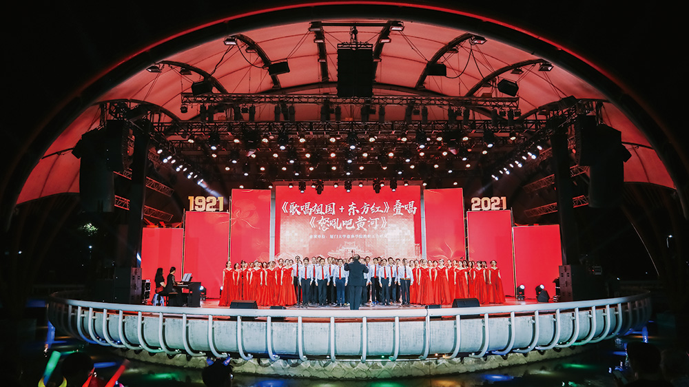“五星紅旗迎風飄揚,勝利歌聲多么響亮……”在慷慨激昂的《歌唱祖國》的歌聲中,廈門大學嘉庚學院慶祝建黨100周年暨2021年畢業(yè)晚會拉開了帷幕。