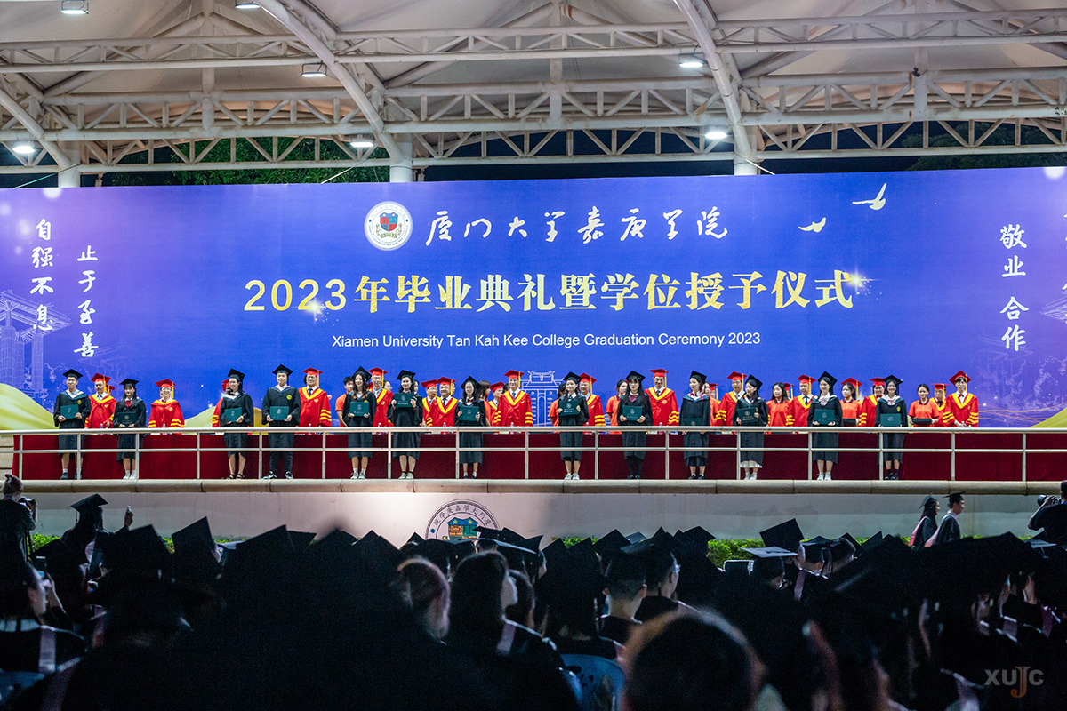 7月2日晚上,廈門大學嘉庚學院2023屆本科生畢業(yè)典禮暨學位授予儀式在北區(qū)田徑場舉行。廈門大學黨委常委、副校長、嘉庚學院黨委書記邱偉杰,廈門大學校務委員會副主任、嘉庚學院院長王瑞芳,廈門大學漳州校區(qū)管委會主任、嘉庚學院黨委常務副書記黎永強,嘉庚學院副院長戴一峰、魯同安、雷銳生、洪永強,紀委書記陳東軍,黨委副書記王潔松,院長助理王冬梅、姚祖嬋、林斕、廖智軍,各教學單位主管、教師代表和畢業(yè)生家長,共同見證了2023屆畢業(yè)生們的榮耀時刻。
