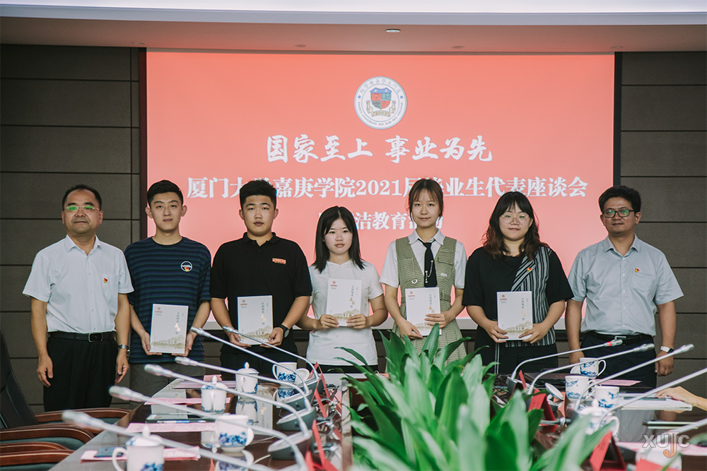 6月22日上午,“國家至上,事業(yè)為先”2021屆畢業(yè)生代表座談會(huì)暨廉潔教育活動(dòng)在我校主樓群3號(hào)樓709會(huì)議室舉行。漳州校區(qū)管委會(huì)主任、嘉庚學(xué)院黨委常務(wù)副書記黎永強(qiáng),黨委副書記王潔松,院長助理姚祖嬋,紀(jì)委副書記易強(qiáng),機(jī)電工程學(xué)院院長方亮,管理學(xué)院黨總支書記張菊香和畢業(yè)生代表們傾心交流?;顒?dòng)由實(shí)習(xí)與就業(yè)服務(wù)中心主任、校友會(huì)秘書處秘書長葉志筑主持。