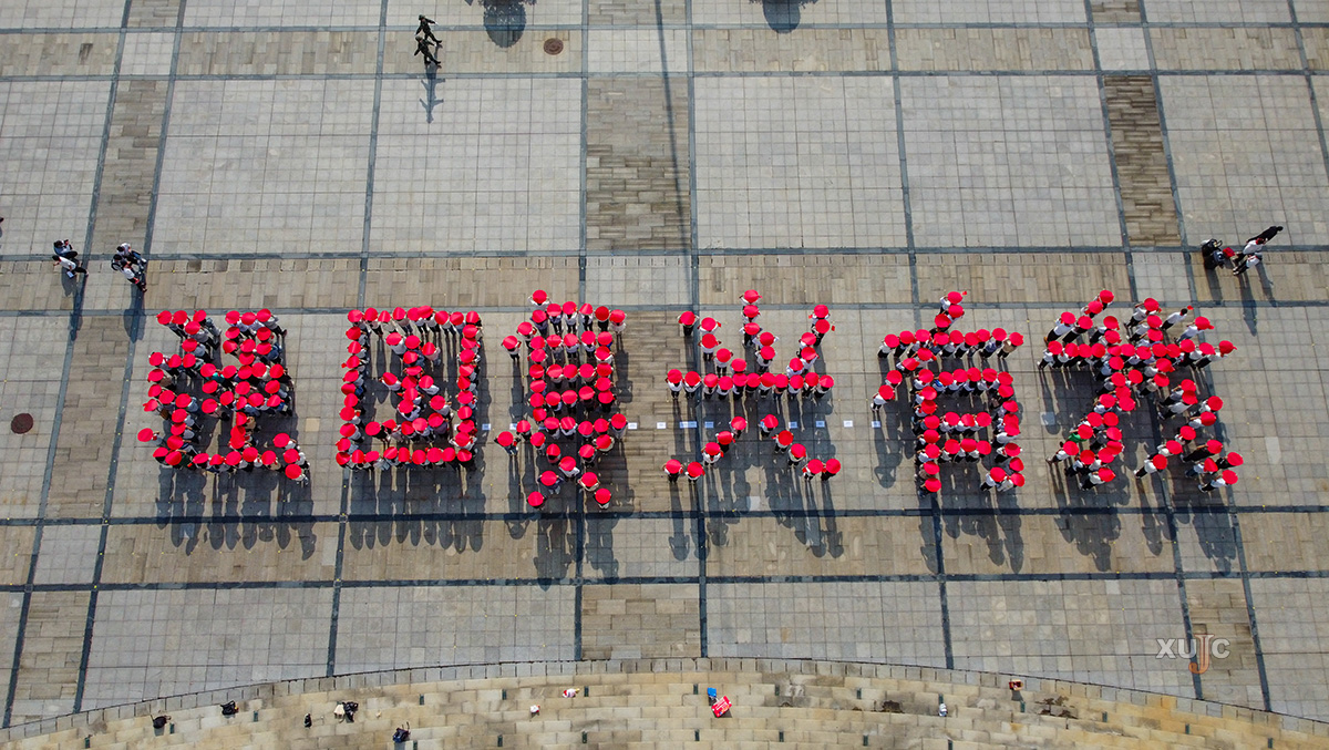 在活動(dòng)正式開始前,來自各院系的270個(gè)同學(xué)手持紅色卡紙,共同擺出“強(qiáng)國(guó)復(fù)興有我”的方陣造型。五位學(xué)生代表帶來振奮人心的詩朗誦《請(qǐng)黨放心,強(qiáng)國(guó)有我》。