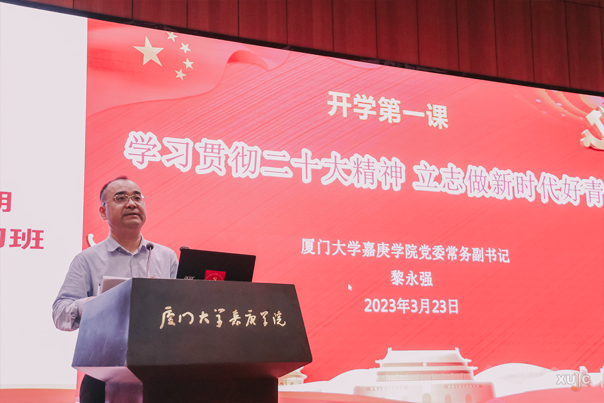 3月23日,廈門(mén)大學(xué)嘉庚學(xué)院黨委常務(wù)副書(shū)記黎永強(qiáng)在主樓群3號(hào)樓大報(bào)告廳以“學(xué)習(xí)貫徹二十大精神,立志做新時(shí)代好青年”為題,為學(xué)生講授“開(kāi)學(xué)第一課”,并對(duì)學(xué)生提出殷切希望。