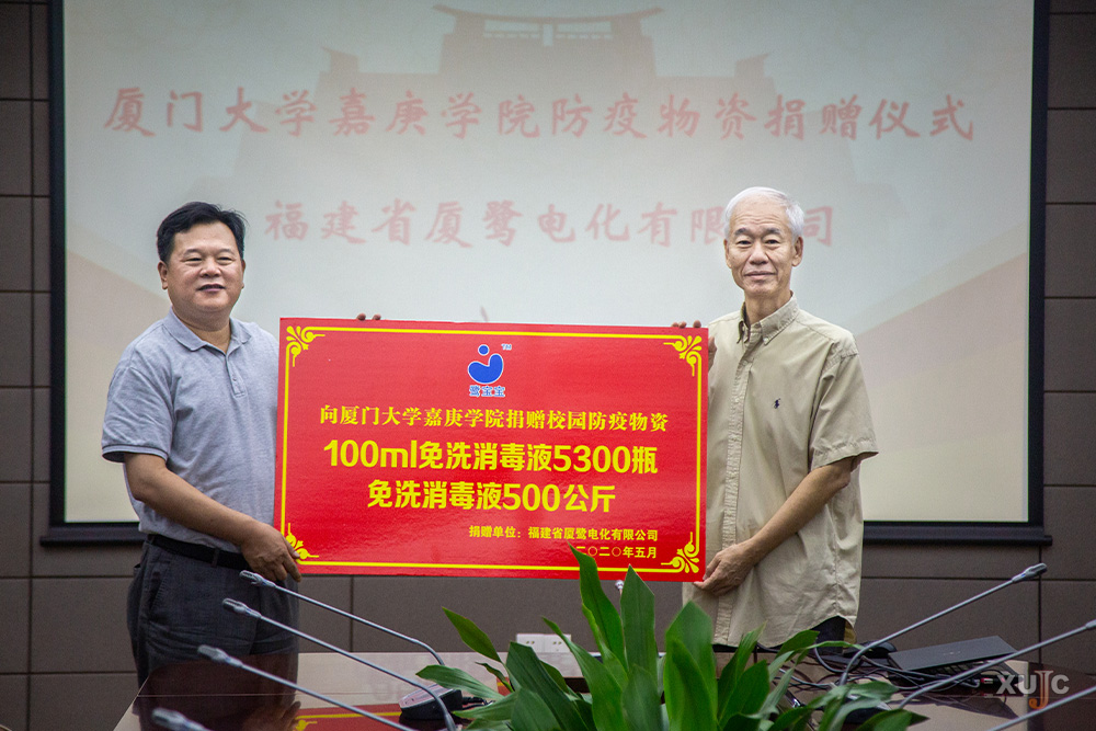 據(jù)悉,2020年5月、6月,廈鷺電化分兩批捐贈我校該公司自主生產(chǎn)的免洗消毒液,合計25公斤裝20桶(500公斤)和100毫升裝5300瓶。