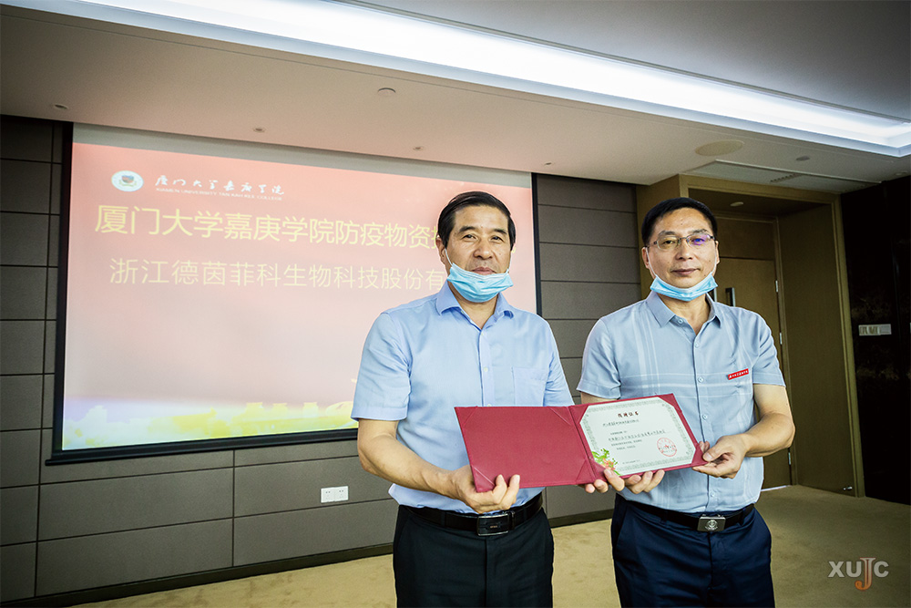 另訊,7月17日上午,我校另一場防疫物資捐贈儀式在主樓群3號樓709會議室舉辦,以感謝福建省廈鷺電化有限公司先后兩次向我校捐贈防疫物資。