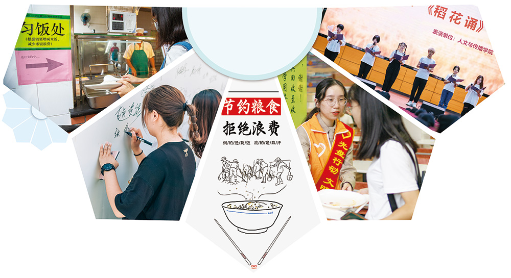 據悉,我校官方新媒體平臺也積極營造厲行節(jié)約的氛圍,推出“光盤”表情包、“光盤打卡”互動活動等。