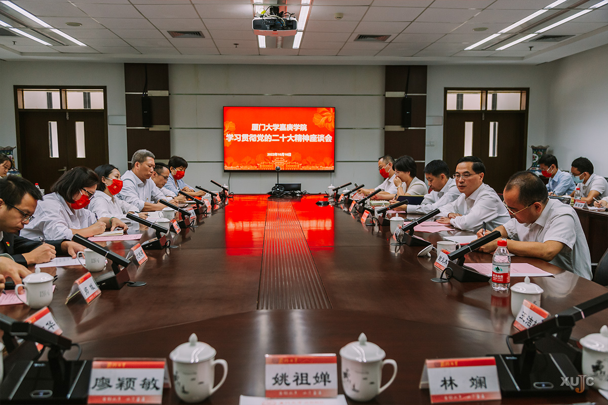 開幕會(huì)結(jié)束后,我校召開學(xué)習(xí)貫徹黨的二十大精神師生黨員代表座談會(huì),第一時(shí)間學(xué)習(xí)領(lǐng)會(huì)大會(huì)報(bào)告精神。廈門大學(xué)黨委常委、副校長、嘉庚學(xué)院黨委書記邱偉杰,廈門大學(xué)漳州校區(qū)管委會(huì)主任、嘉庚學(xué)院黨委常務(wù)副書記黎永強(qiáng),嘉庚學(xué)院副院長謝火木,嘉庚學(xué)院黨委副書記王潔松參加了座談會(huì)。師生黨員代表紛紛熱議開幕會(huì)盛況,圍繞報(bào)告內(nèi)容,暢談心得感悟。