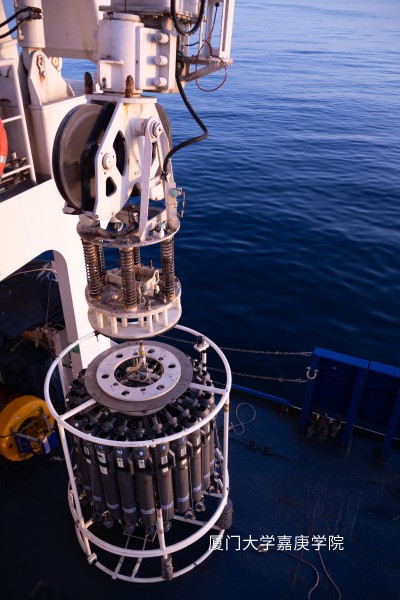 身為親歷這場深藍(lán)遠(yuǎn)征的環(huán)境學(xué)子,回憶,是維納斯帶映襯下CTD采樣檢測營養(yǎng)鹽的嚴(yán)謹(jǐn)迅速,是無邊暗夜中進(jìn)行浮游生物拖網(wǎng)采集的循序漸進(jìn),是烈日下下放箱式采樣器時(shí)的齊心協(xié)力……它們共同烙印下問海求知的錚錚誓言:以‘嘉庚精神’為錨,以‘科研求真’為羅盤,在深藍(lán)的求知之境中,踐行著‘科研者’永不言棄的諾言。 這里沒有精心設(shè)計(jì)的構(gòu)圖,只有汗水浸透的使命,與大海鐫刻進(jìn)我們骨血的精神圖騰。