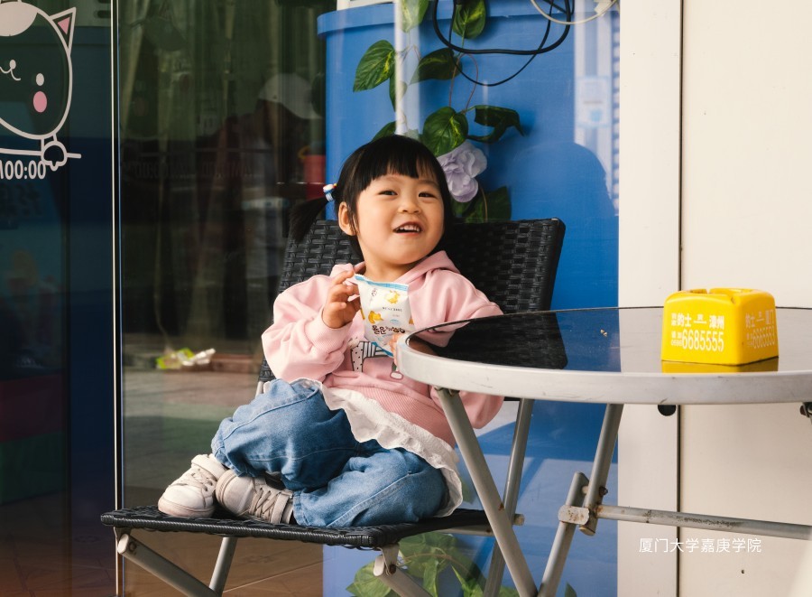 小女孩咿呀咿呀地說:“又看到你們啦!嘉庚的姐姐”