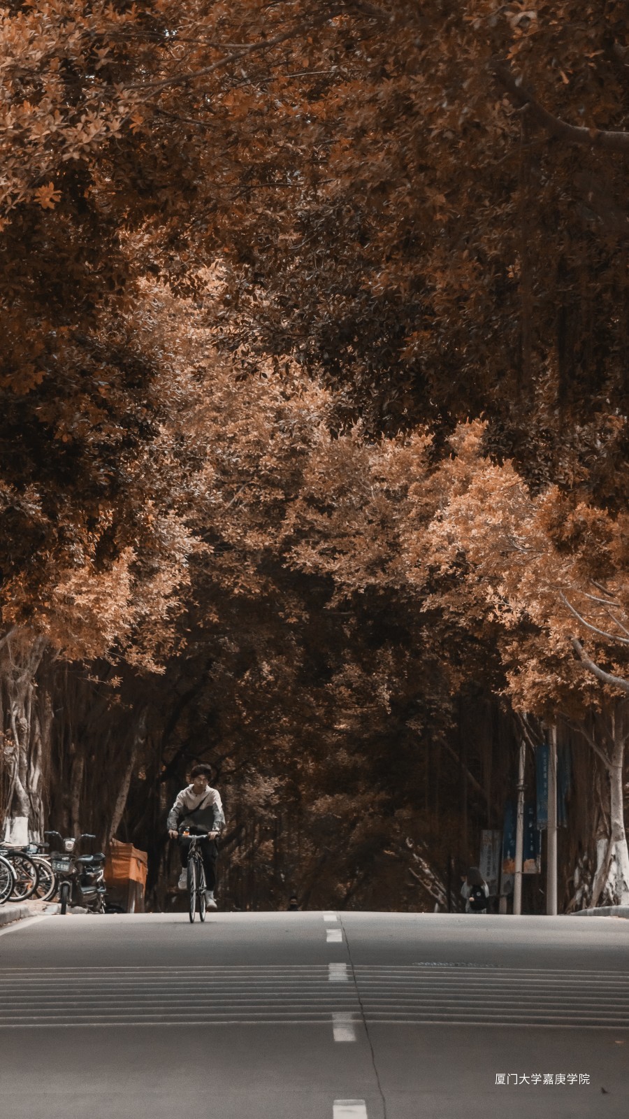 作為一名環(huán)境科學(xué)與工程專業(yè),又熱愛攝影的學(xué)生,本次作品以臆想中“嘉園”的“春”和“秋”為切入點(diǎn),旨在發(fā)現(xiàn)校園內(nèi)自然環(huán)境與人類、建筑物和道路之間的聯(lián)系,以相機(jī)記錄和調(diào)色的手法從中尋求一種微妙的美感。