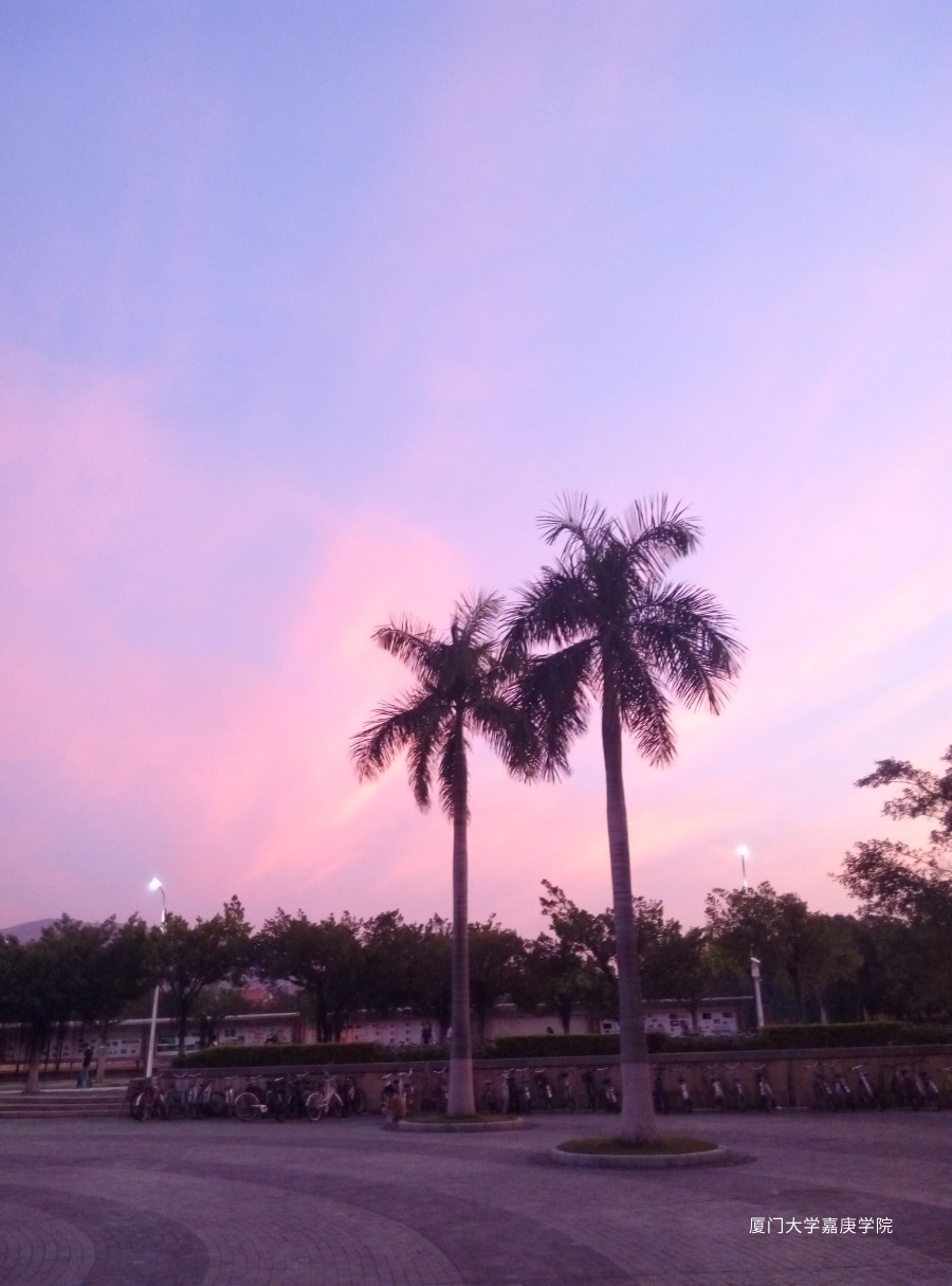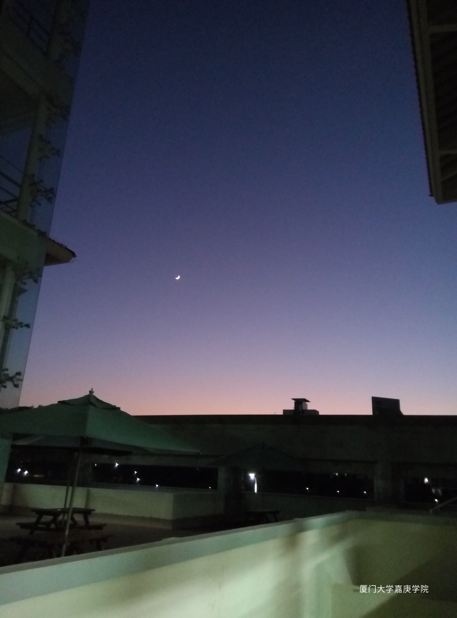 太陽的升起喚醒了沉睡的嘉庚, 時(shí)間在嘉人們的忙碌中悄悄流逝,不經(jīng)意間如勾的月亮已爬上樹梢,嘉人們便也回了“嘉”。這便是在嘉的每一天。
